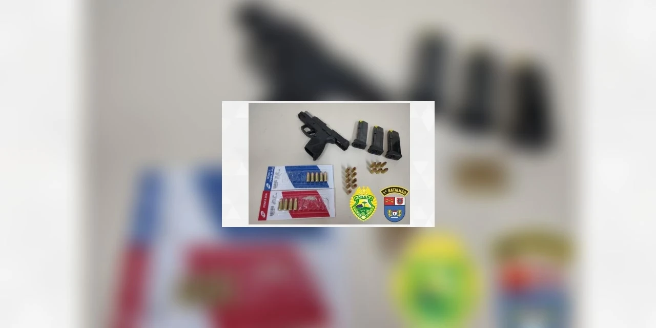 Buscas na residência do casal resultaram na apreensão de uma pistola 9mm e de munições que estavam em um dos armários do imóvel. Apesar de estar em situação regular, a arma foi apreendida e levada para a delegacia de Polícia Civil.