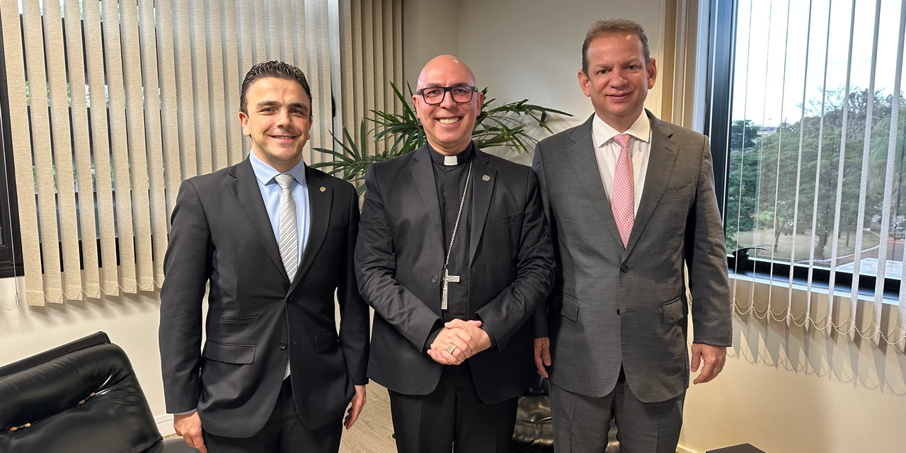 COM ASSESSORIAS - O deputado federal Aliel Machado (PV-PR), presidente da Comissão de Defesa dos Direitos da Pessoa Idosa (Cidoso), da Câmara dos Deputados, e o vice-presidente, Castro Neto (PV-PI), se reuniram nesta quarta-feira, 31, com o secretário geral da Confederação Nacional dos Bispos do Brasil (CNBB), Dom Ricardo Hoepers. O objetivo da visita foi alinhar possíveis ações conjuntas da Cidoso e da Pastoral do Idoso.