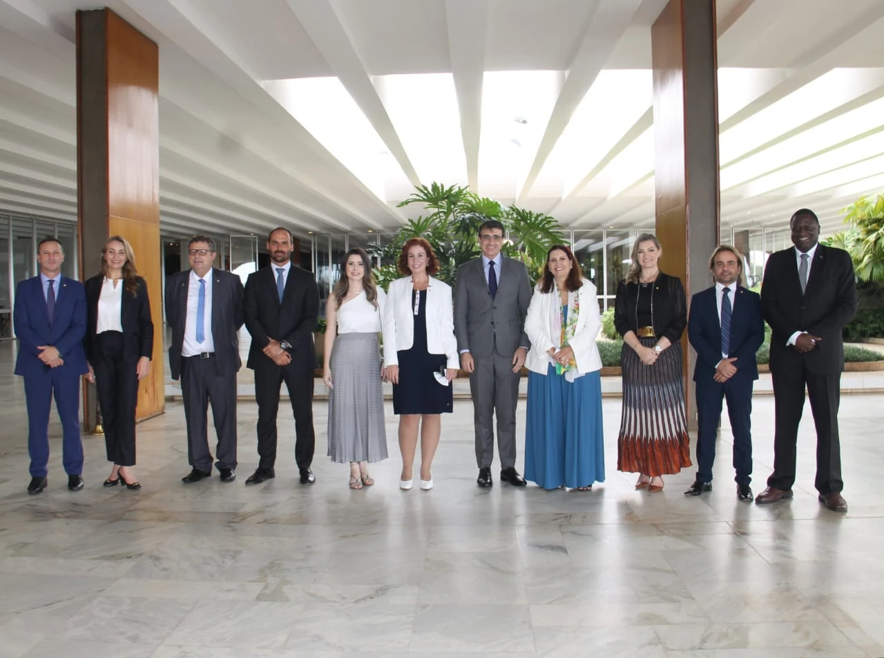 COM ASSESSORIAS - O PL 5595/2020 que torna a educação serviço essencial durante a pandemia, aprovado na Câmara dos Deputados e que agora será discutido e votado no Senado Federal, foi o tema da reunião entre a parlamentar paranaense Aline Sleutjes, que é co-autora do projeto, as autoras, deputada Paula Belmonte (Cidadania-DF) e deputada Adriana Ventura (Novo-SP), o Senador Marcos do Val (Podemos-ES), que será o relator da matéria no Senado e o ministro da Educação Milton Ribeiro nesta terça-feira, 27 de abril, no Ministério da Educação.