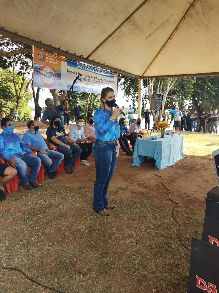 Prefeita Lucimar, “Gostaria de fazer um agradecimento, em nome de toda a administração e de todos os munícipes de Jardim Olinda, em relação ao evento memorável que aconteceu no último final de semana no nosso município, Jardim Olinda, especificamente nos Rios Pirapó e Paranapanema. Tivemos a honra de receber em nosso município o Secretário, Jorge Seif e nossa Deputada da ponte, Aline Sleutjes, além de vários prefeito e lideranças de toda a região. Tivemos a oportunidade de comemorar, também, a licitação da ponte sobre o Rio Pirapó que liga o município de Jardim Olinda à Itaguajé que aconteceu durante essa semana e só foi possível pela sensibilidade da nossa Deputada Federal Aline em nos proporcionar recursos para execução dessa tão sonhada obra. É uma honra receber todas essas autoridades. Fica aqui o meu muito obrigado!”.