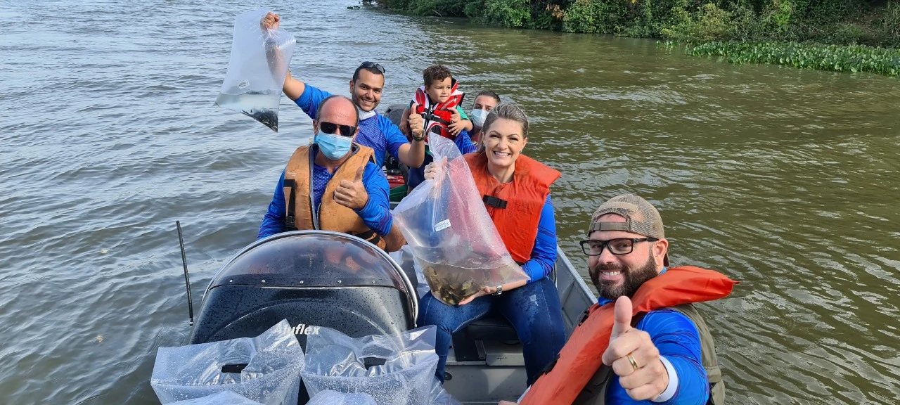 COM ASSESSORIAS - No último sábado, 29 de maio, aconteceu, às beiras dos Rios Pirapó e Paranapanema, o evento Soltura dos Alevinos realizado pelo Projeto Salvar. A Presidente da Comissão de Agricultura Aline Sleutjes prestigiou o evento idealizado pela Polícia Civil na pessoa do Delegado Alysson Tinoco e do agente Caio juntamente à Associação de Amigos do Rio Paranapanema da região Noroeste do Estado do Paraná.