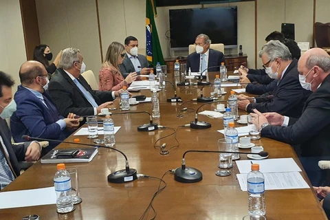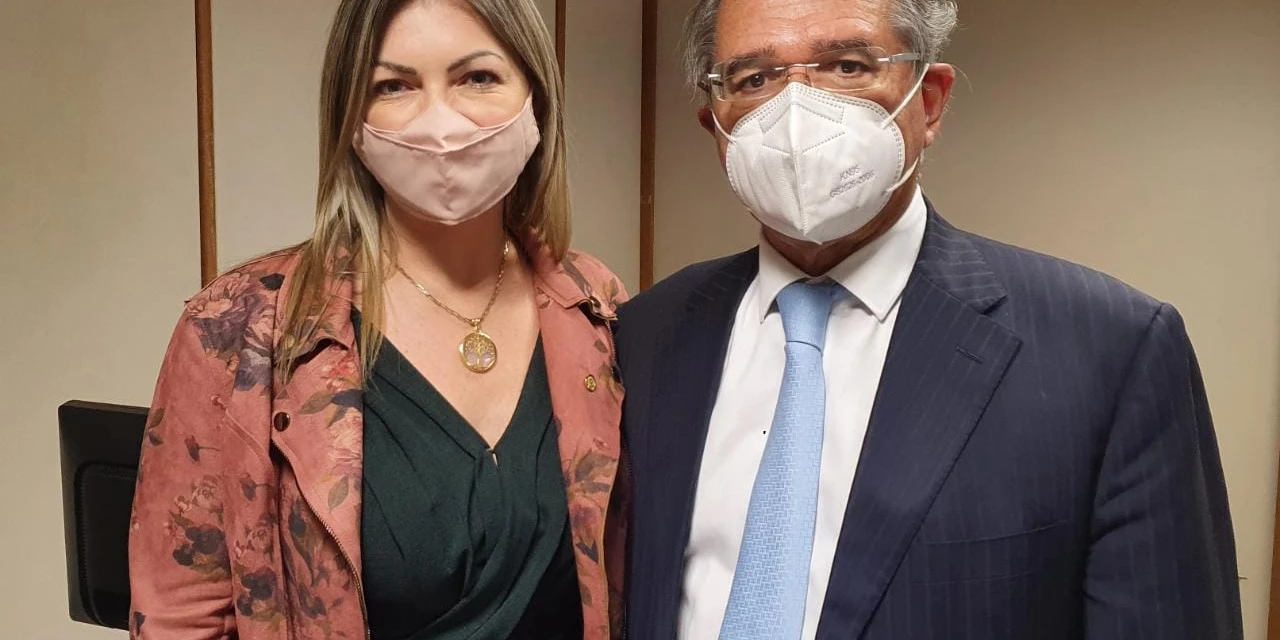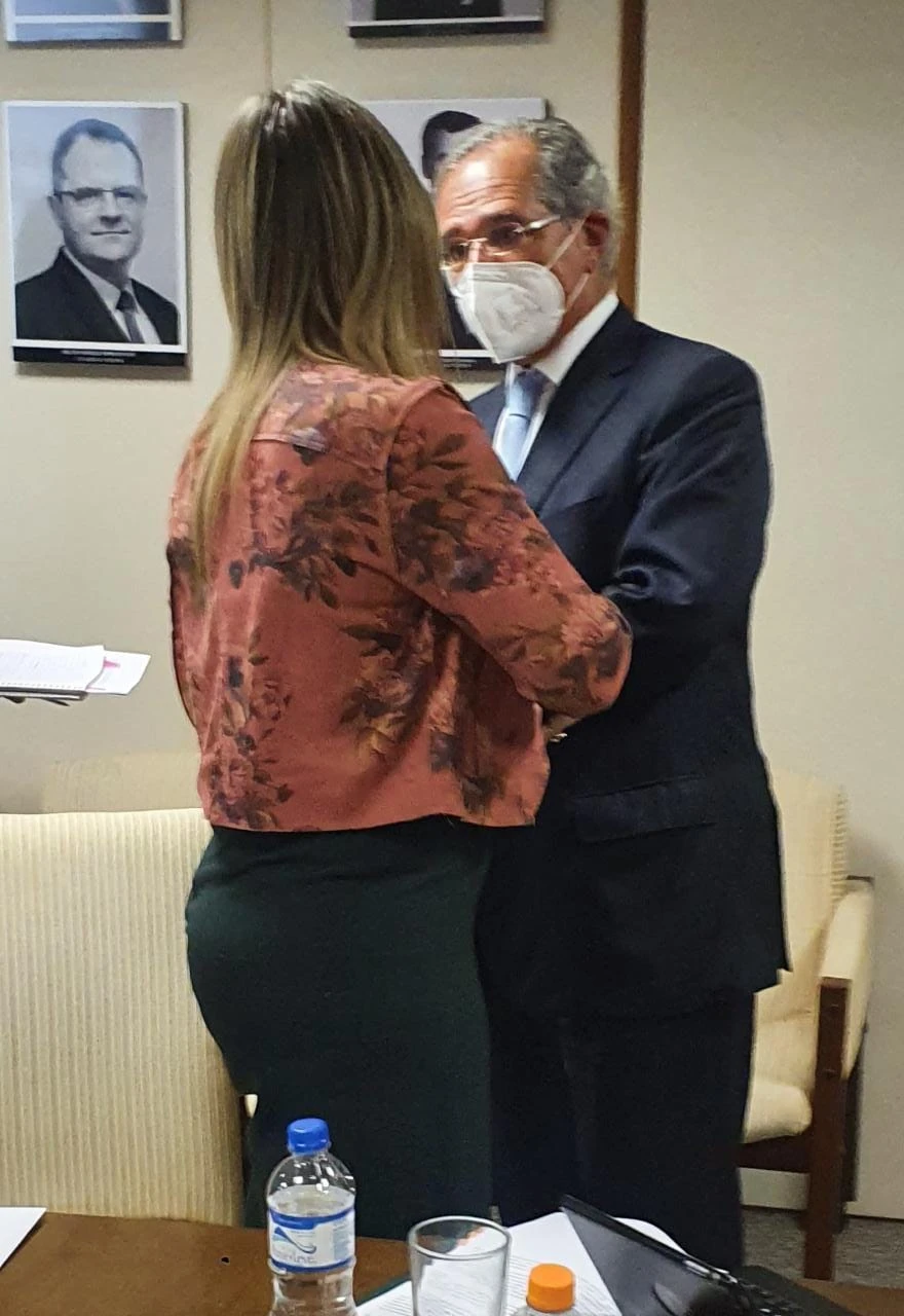 COM ASSESSORIAS - Em constante trabalho para discutir e tentar solucionar a questão do Fundo de Assistência ao Trabalhador Rural (Funrural) e do Programa de Financiamento às Exportações (Proex), a vice-líder do Governo e Presidente da Comissão de Agricultura, Pecuária e Abastecimento (CAPADR) Deputada Aline Sleutjes (PSL-PR), esteve em audiência com o ministro da Economia, Paulo Guedes, solicitada pelos deputados do agro.