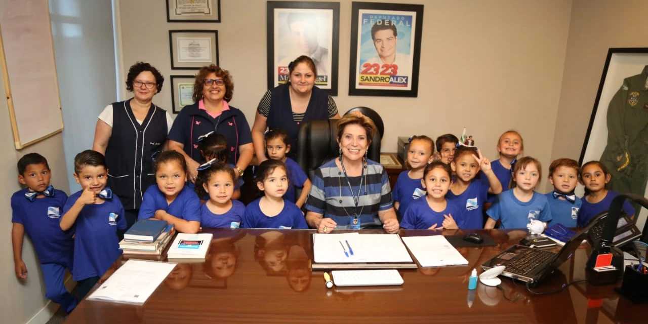 Ao todo, 15 crianças com idades entre 4 e 5 anos foram recebidas pela vice-prefeita Elizabeth Schmidt. Ela apresentou a galeria de prefeitos no saguão do gabinete e as convidou para a sala de reuniões, onde os alunos puderam interagir de maneira mais próxima, com perguntas. A vice-prefeita ainda explicou sobre os projetos desenvolvidos pelo poder executivo.