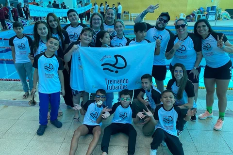 COM ASSESSORIAS - O projeto social 'Treinando Tubarões' fez história no 39º Jogos Estudantis Municipais (JEM) de Ponta Grossa. Pela primeira vez, uma equipe levou 17 nadadores de escola pública para competir.