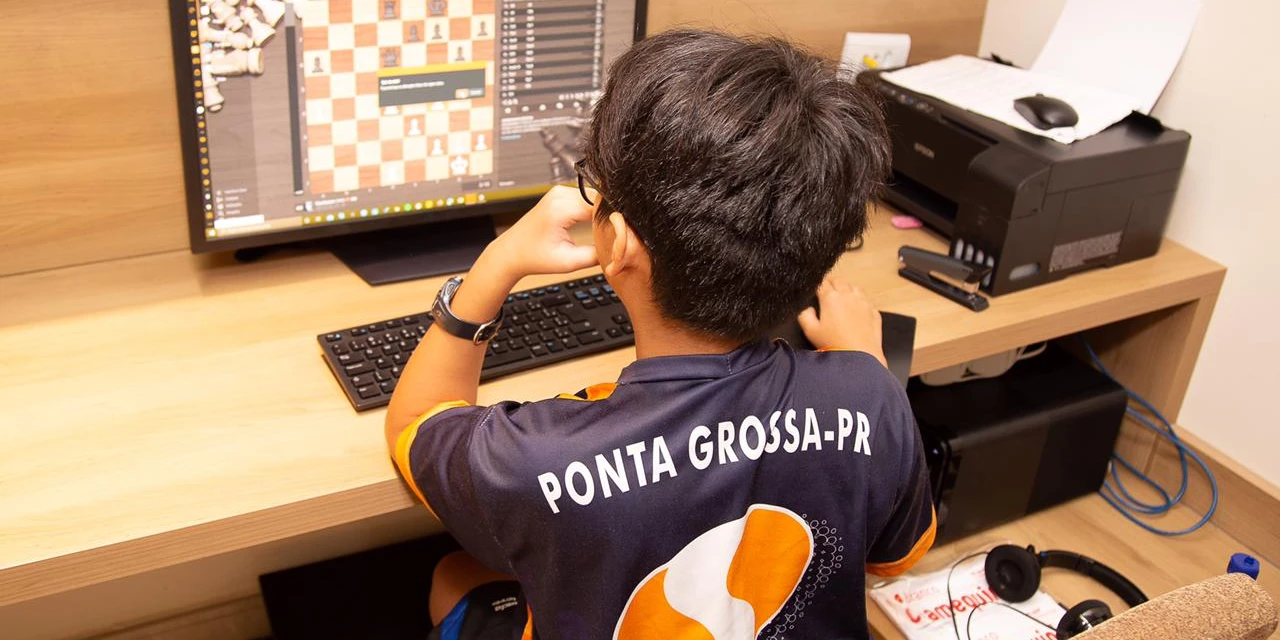 COM ASSESSORIAS - Motivados pela pandemia da Covid-19, muitos campeonatos esportivos precisaram mudar o formato do presencial para o on-line, como é o caso do Xadrez. Mas esta nova configuração de treinos e competições não desmotivou os enxadristas do Colégio Pontagrossense Sepam, que já possuem um histórico de conquistas nacionais e internacionais na modalidade, e que vêm crescendo com as recentes conquistas. No último dia 29 de fevereiro, o aluno Rafael Fujimoto, 11 anos, foi o campeão da Etapa Peão do Circuito Infantil Xeque & Mate Online de Xadrez, na categoria C (para alunos de 6º e 7º anos). A mãe do atleta, Melissa Aoki Fugimoto, relata que sempre incentivou o filho, pois acredita que o esporte ajuda no desenvolvimento da criatividade e a manter o equilíbrio emocional. “Ele gosta muito de jogar xadrez, então encontramos uma forma de alinhar o esporte ao estudo, e estamos percebendo mudanças na inteligência emocional dele”, afirma Melissa.