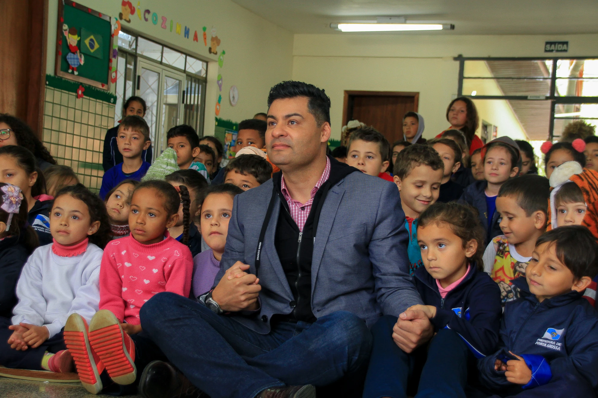 IMPRENSA/Ponta Grossa - O projeto Rádio Comilão, realizado na Escola Municipal Prefeito Heitor Ditzel, na Vila Dal Col, em Ponta Grossa, recebeu mais um visitante nesta quarta-feira. O entrevistado do programa, desta vez, foi o prefeito Marcelo Rangel, que foi até a escola para conhecer de perto a ideia desenvolvida por alunos e professores. Por meio do programa, realizado nos alto falantes, os alunos aprendem mais sobre alimentação saudável e sobre comunicação.