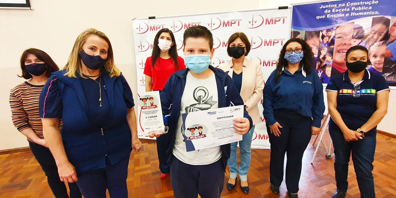 COM ASSESSORIAS - Onze estudantes das escolas públicas municipais de Ponta Grossa receberam nesta terça (17) o reconhecimento por trabalhos realizados no prêmio "Resgate a Infância: a escola no combate ao trabalho infantil", realizado pelo Ministério Público do Trabalho (MPT) em parceria com a Secretaria Municipal de Educação. A iniciativa, realizada em todo o país, tem o objetivo de fomentar a participação das crianças nas ações de prevenção ao trabalho infantil, por meio de atividades integradas com as escolas.