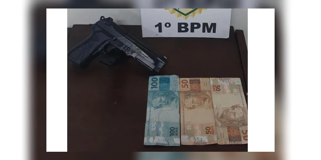 Com ele, os policiais localizaram um simulacro de arma e o dinheiro roubado. O homem foi preso e encaminhado para a delegacia.