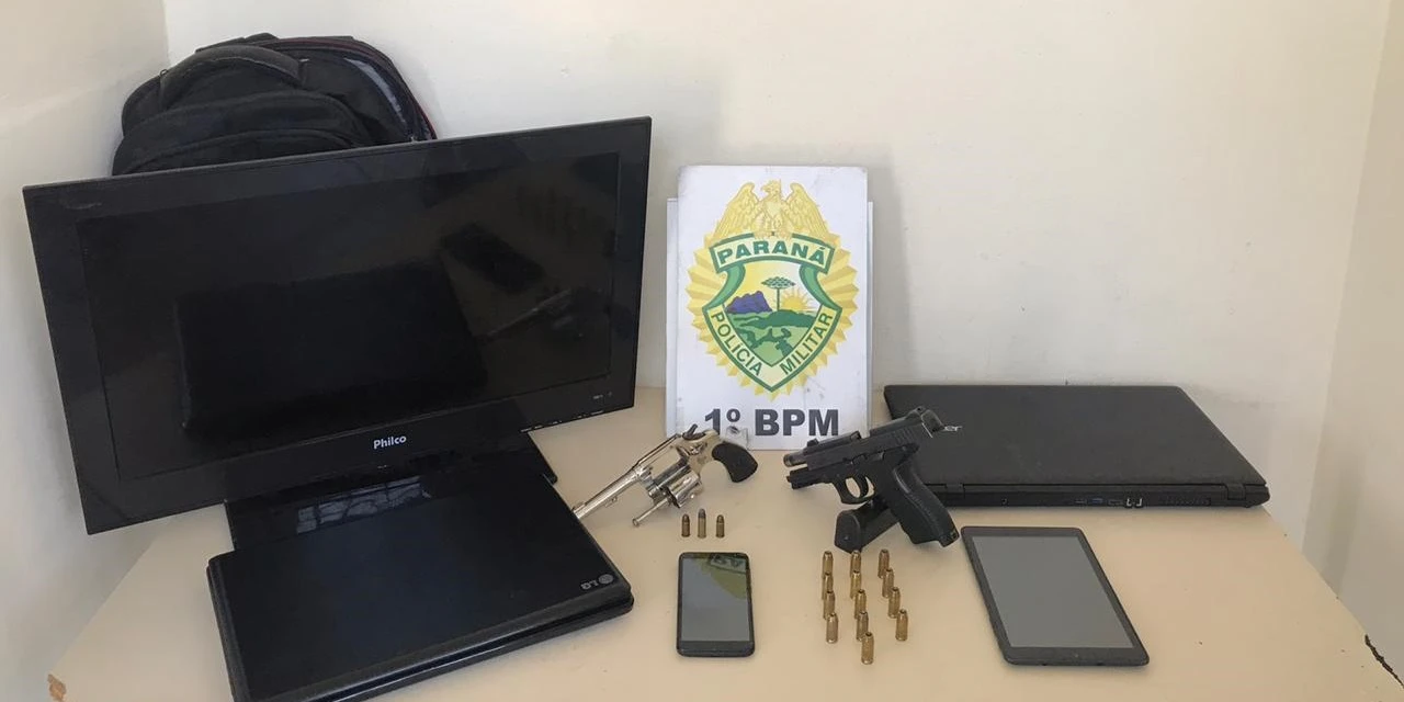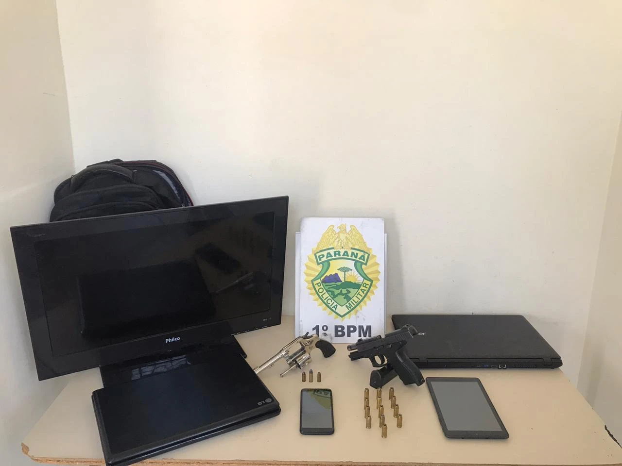 No local foram localizados os outros aparelhos eletrônicos relacionados a situação do roubo, além de um revólver calibre 32, com munições, utilizado contra a equipe policial, segundo o registro da ocorrência.