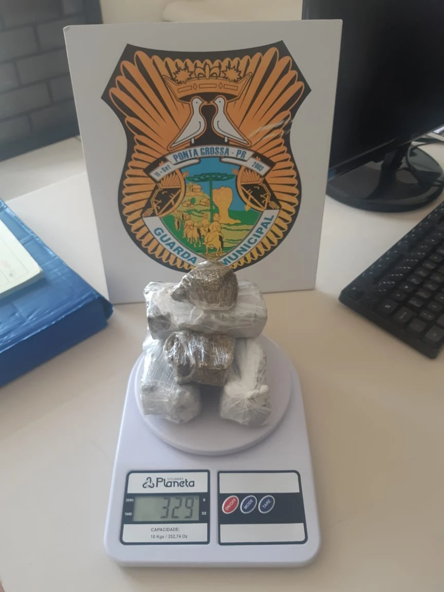 COM ASSESSORIAS - A Guarda Civil Municipal (GCM) de Ponta Grossa, órgão vinculado à Secretaria Municipal de Cidadania e Segurança Pública (SMCSP), apreendeu, na manhã de hoje (04), 329 gramas de maconha em uma residência no bairro Cará-Cará. A situação teve início após denúncia de uma mulher que encontrou drogas entre os pertences do filho.