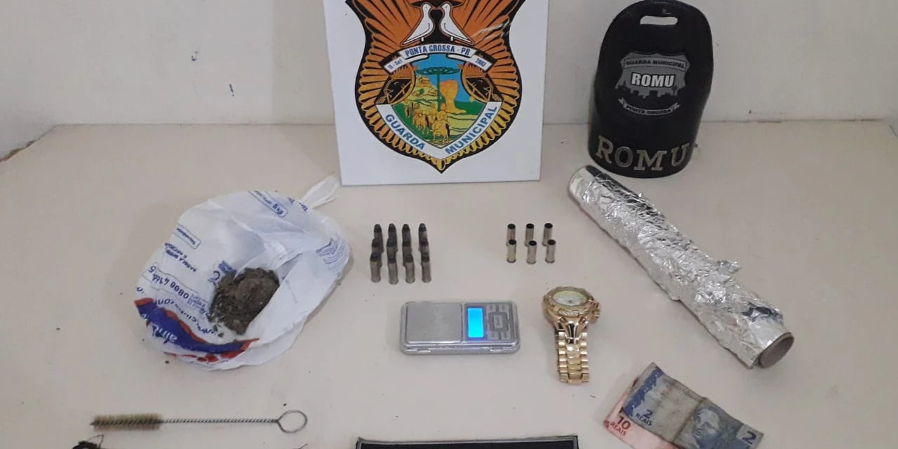 Algumas ruas depois, o condutor do veículo abandonou o carro e correu para dentro de uma residência. A GM foi até a casa e encontrou várias munições no local: 6 munições calibre 38 deflagradas e 12 munições calibre 357, além de 16 gramas de maconha e uma balança de precisão. Os guardas não encontraram nenhuma arma de fogo.