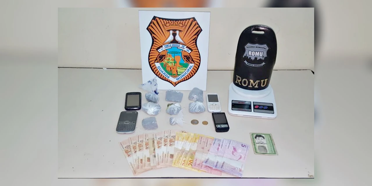 IMPRENSA/Ponta Grossa - A equipe Romu da Guarda Municipal apreendeu, na noite de ontem (21), cerca de 160 gramas de maconha, uma balança de prisão e mais de 500 reais em dinheiro em uma ação na vila 26 de Outubro, em Uvaranas. Os itens foram encontrados na casa de um indivíduo suspeito que tentou fugir dos agentes durante abordagem no cruzamento das ruas Coelho Neto e Afonso Arinos. O homem foi preso e encaminhado à delegacia da 13ª SDP.