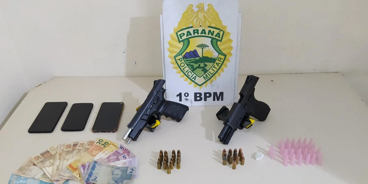 Os policiais então pediram apoio de outras viaturas da PM e conseguiram realizar a abordagem dos suspeitos. As equipes então localizaram com a mulher uma pistola Bull Cherokke calibre 9mm, com 13 munições. Com o homem, eles encontraram uma pistola 9mm da marca Taurus, com 17 munições.