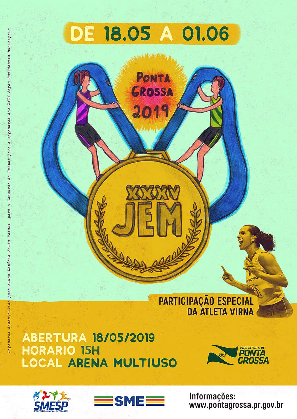 O boletim número 1 com a programação completa dos 35º JEM pode ser acessado neste endereço eletrônico: http://www.pontagrossa.pr.gov.br/files/smes/jem_19_boletim_01_0.pdf.