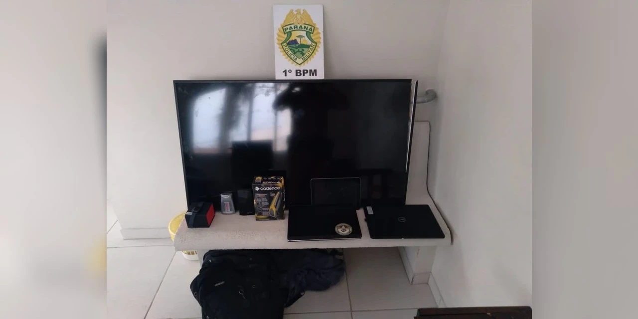 Ao tentar abordar a dupla, um dos homens largou uma televisão e fugiu. O outro rapaz foi detido e disse que não sabia explicar a origem dos objetos que estava com ele. Depois de alguns minutos, o homem confessou que a dupla tinha invadido uma residência e furtado vários pertences do local.