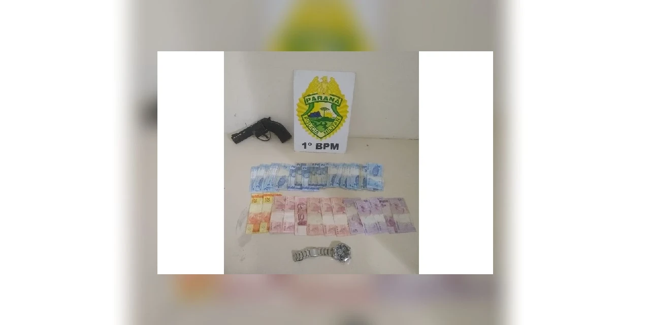 Os policiais receberam as características do assaltante e o localizaram perto do local do roubo. A PM encontrou com o rapaz um simulacro de pistola e dinheiro. O assaltante, de 23 anos, foi preso e levado para a delegacia.