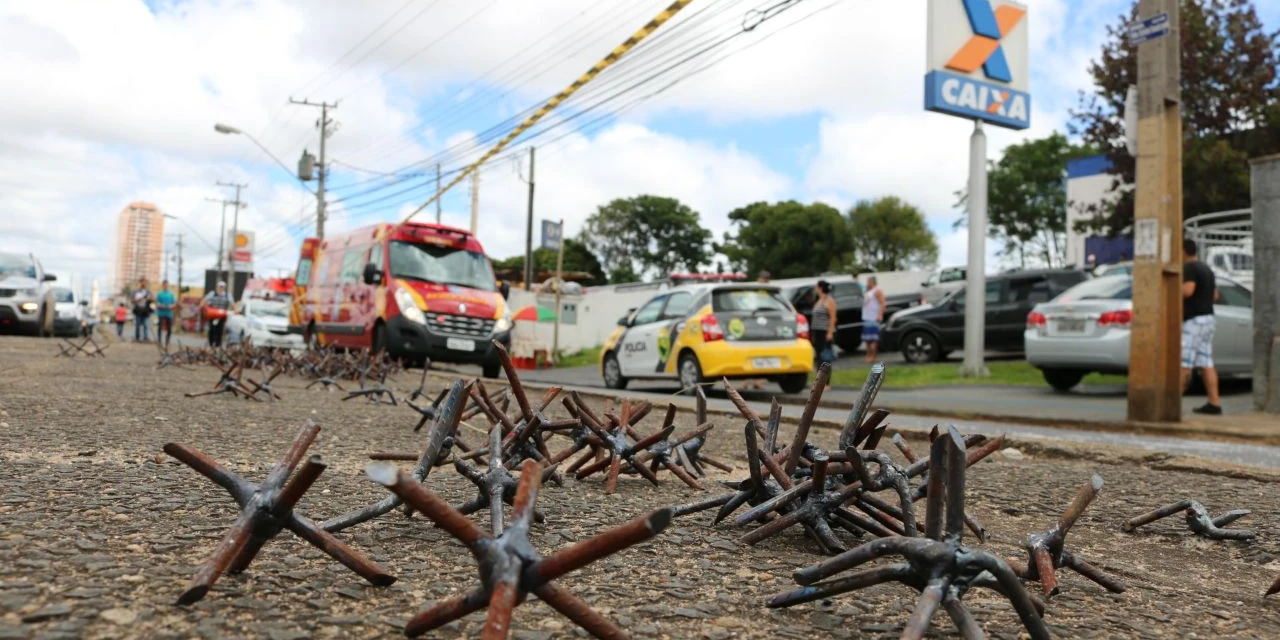 Miguelitos (artefatos confeccionados para furar pneus e que são usados para permitir a fuga dos bandidos em ações como a desta manhã) e cápsulas ficaram espalhadas por toda a via. O material recolhido passará por perícia da Polícia Federal.