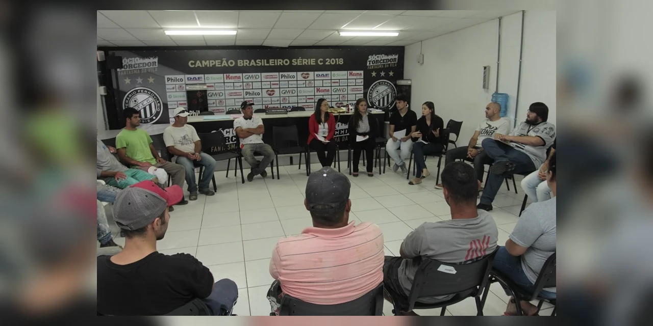 COM ASSESSORIAS - O Operário Ferroviário, em parceria com o Juizado de Violência Doméstica e Familiar contra a Mulher e Anexos de Ponta Grossa, promoveu uma atividade diferente aos atletas, membros da comissão técnica e funcionários do clube, na tarde dessa quarta-feira (27). Eles participaram de uma dinâmica sobre machismo, masculinidade tóxica e violência contra a mulher.