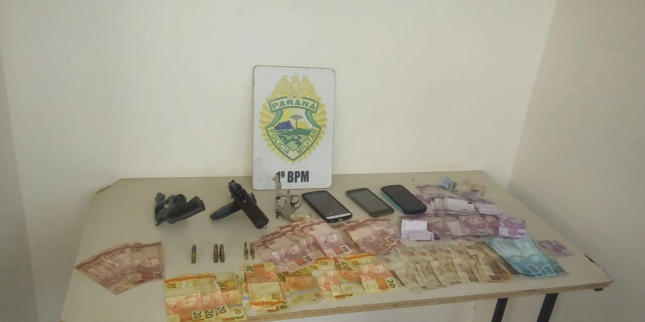 Com eles foram encontrados uma pistola calibre 765 e dois revólveres, de calibres 22 e 38, todos municiados, além de vários aparelhos celulares e certa quantia em dinheiro. O carro, as armas e todos os materiais apreendidos foram encaminhados para a Polícia Civil.
