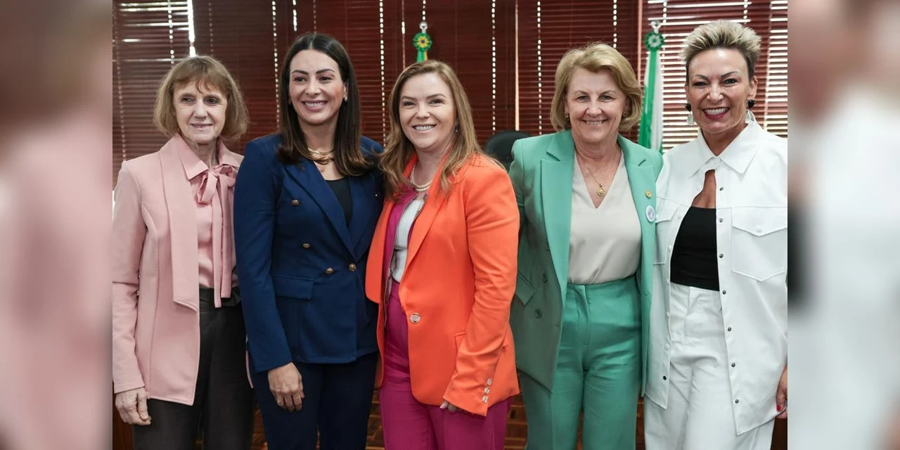 COM ASSESSORIAS - A líder da Bancada Feminina, deputada Mabel Canto (PSDB), juntamente com as deputadas Márcia Huçulak (PSD), Cloara Pinheiro (PSD) e Luciana Rafagnin (PT), estiveram reunidas nesta segunda-feira (20), com a secretária Leandre Dal Ponte, da Secretaria da Mulher, Igualdade Racial e Pessoa Idosa (SEMIPI), para receber contribuições ao projeto de lei nº 625/2023, que cria o Código de Defesa dos Direitos da Mulher Paranaense.