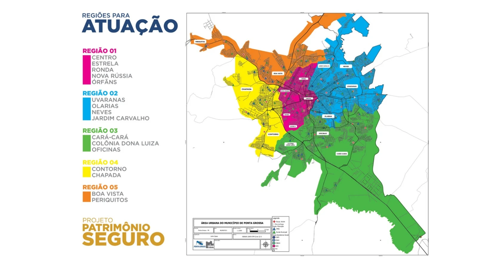 A secretária municipal da Cidadania e Segurança Pública, Tânia Sviercoski, comenta que serão instaladas outras quatro bases na cidade divididas por regiões. A Região 1 atenderá o Centro, Vila Estrela, Ronda, Nova Rússia, e Órfãs. A Região 2 atenderá Uvaranas, Olarias, Neves e Jardim Carvalho. A base da Região 3 ficará responsável pelo Cará-Cará, Colônia Dona Luiza e Oficinas. A Região 4 atenderá o Contorno e a Chapada; e a Região 5 atenderá Boa Vista e Periquitos.