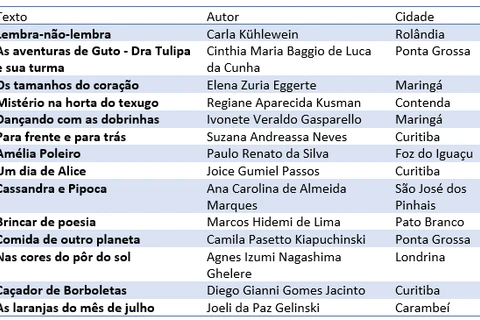Um dos aspectos que chamou atenção durante o concurso foi a participação de escritores de todas as regiões paranaenses. “Recebemos textos de autores de 50 diferentes municípios paranaenses, o que nos mostra a importância do fomento à produção literária”, destaca Alessandra Bucholdz. O site, criado inicialmente para divulgação do edital teve mais de três mil acessos. As inscrições aconteceram no período de 27/06 a 15/08.