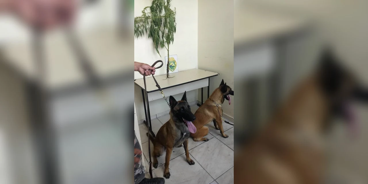 Com o apoio de cães de detecção de entorpecentes foi possível localizar um arbusto de maconha de aproximadamente 1,5 metro de altura, plantado no terreno de uma residência, alvo da denúncia.