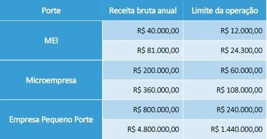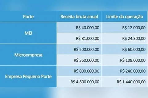 Limites de operações por empresa:Os micro e pequenos empresários poderão solicitar empréstimos de até 30% da receita bruta anual de 2019. Veja alguns exemplos: