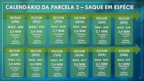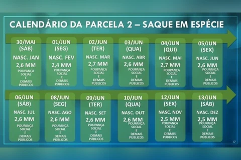 Além disso, o banco escalonou os pagamentos. Neste sábado (30), poderão sacar apenas os 2,6 milhões de beneficiários nascidos em janeiro. Essa regra vale também para quem indicou contas de outros bancos para receber a ajuda. Confira abaixo o calendário completo: