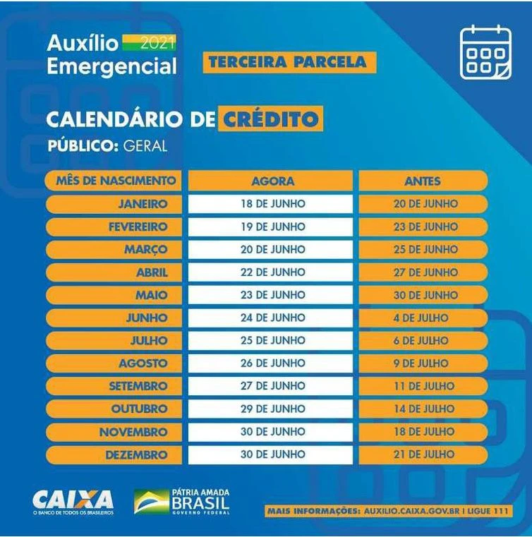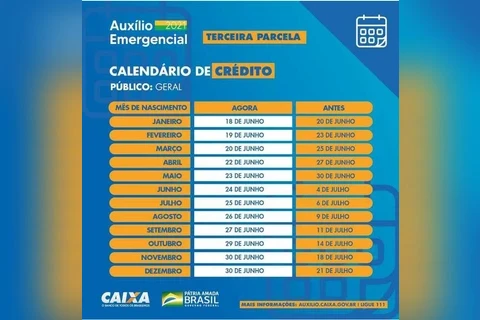 Na última quinta-feira (15), a Caixa anunciou a antecipação do pagamento da quarta parcela. O calendário de depósitos, que começaria no próximo dia 23 e terminaria em 22 de agosto, teve o início antecipado para o último dia 17 e será concluído em 30 de julho.