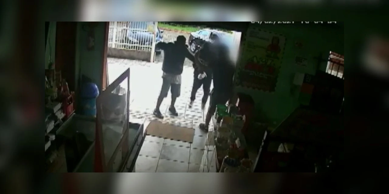 Uma câmera de segurança registrou o momento em que dois suspeitos entraram em um mercado de Ponta Grossa, nos Campos Gerais do Paraná, e assaltaram o local, na quinta-feira (4).