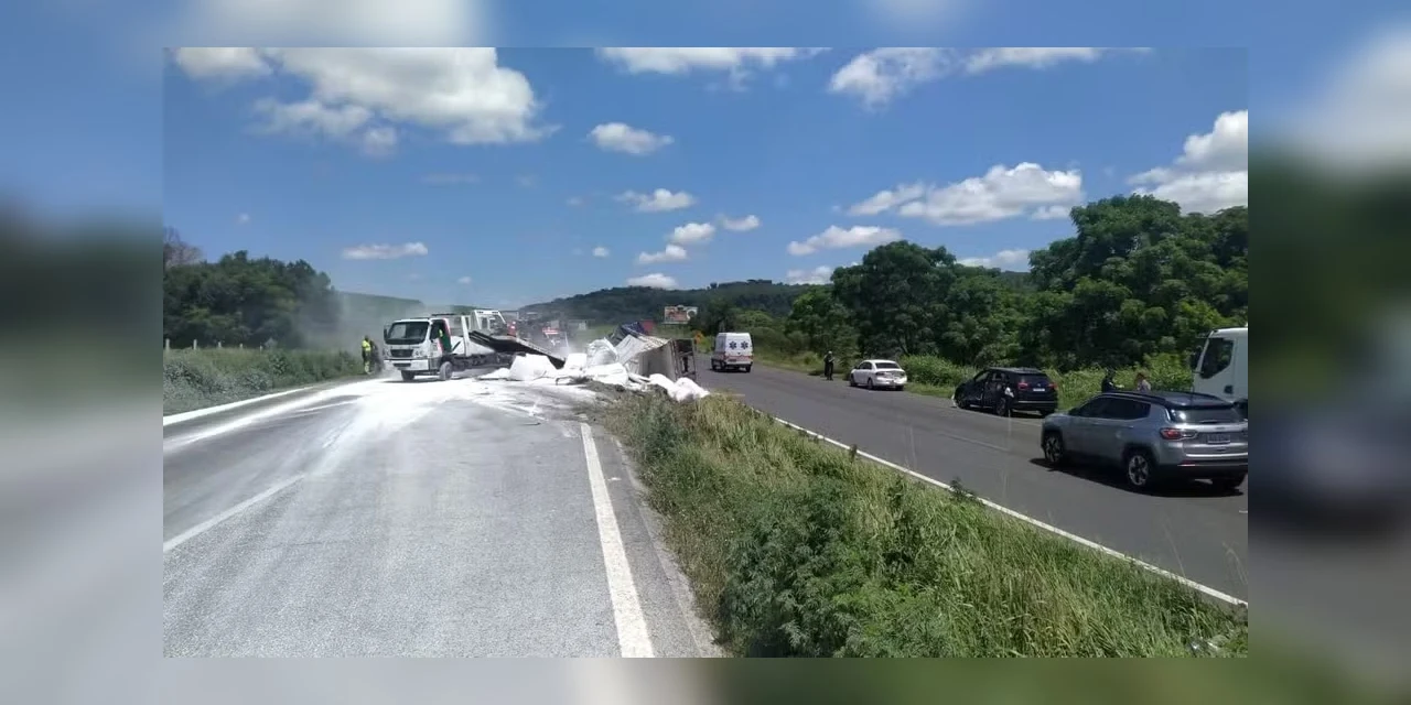 Segundo a Polícia Rodoviária Federal (PRF), o motorista do bitrem trafegava no sentido Ponta Grossa, perdeu o controle do veículo e caiu no canteiro central, na pista sentido Curitiba.