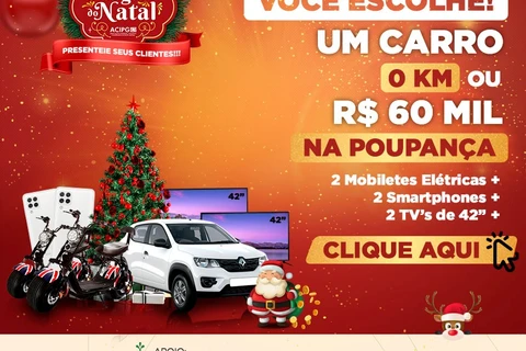 Este ano os consumidores que participarem da "Magia de Natal" terão a chance de ganhar um carro 0km ou R$ 60 mil em poupança, além de mobiletes elétricas, smartphones e TVs de 42 polegadas. A cada R$ 50 em compras nas lojas participantes da campanha os consumidores ganharão um cupom que irá concorrer ao sorteio que acontece no dia 17 de janeiro do ano que vem.
