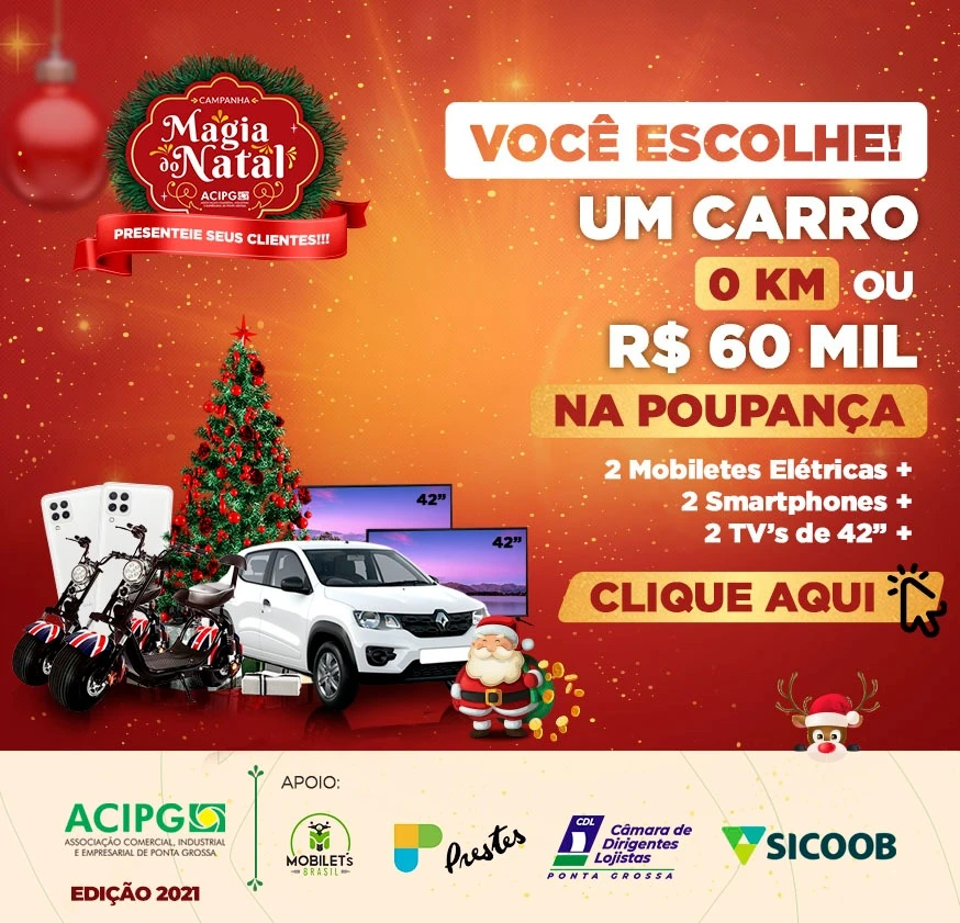 COM ASSESSORIAS - A Campanha "Magia do Natal", da Associação Comercial, Industrial e Empresarial de Ponta Grossa (ACIPG) irá sortear mais de R$ 80 mil em prêmios e os comerciantes já podem confirmar a participação na ação que visa incentivar e movimentar comércio de Ponta Grossa.
