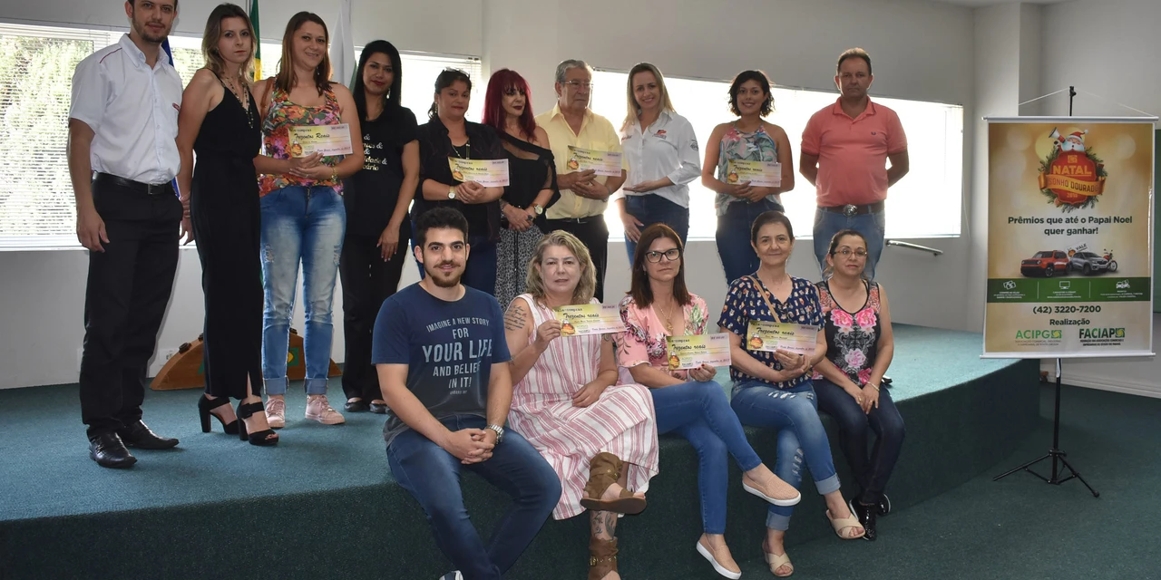 COM ASSESSORIAS - A Campanha Natal Sonho Dourado 2018 realizada pela Federação das Associações Comerciais e Empresariais do Paraná (FACIAP), em parceria a Associação Comercial, Industrial e Empresarial de Ponta Grossa (ACIPG) premiou na tarde desta quarta-feira (19) mais 15 consumidores ponta-grossenses. Foram 14 vales-compras de R$ 300,00 e um de R$ 2 mil. Até o dia 9 de janeiro terão sorteios todas as quarta e sábados.