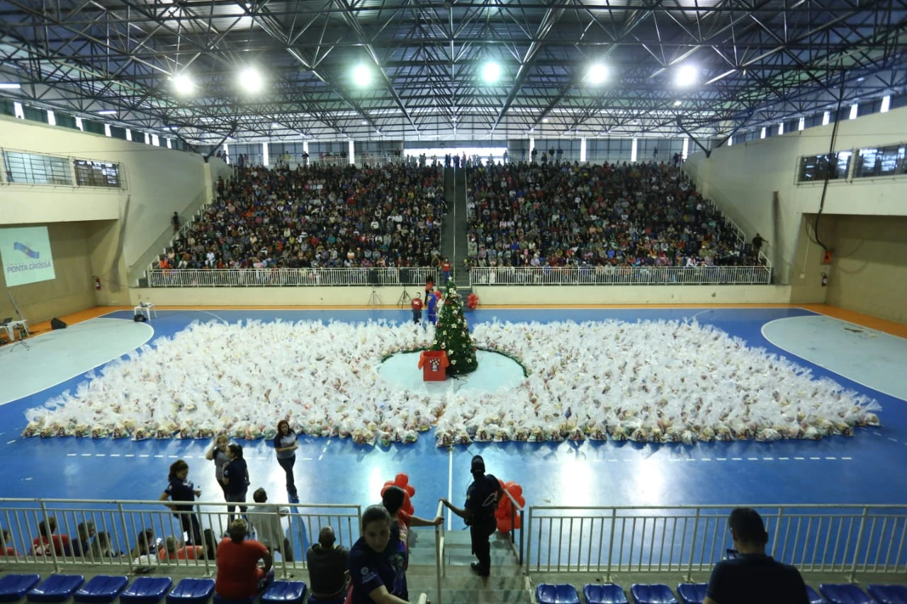IMPRENSA/Ponta Grossa - A Secretaria Municipal de Políticas Públicas Sociais (SMPPS) e Fundação de Assistência Social (FMS) participam, todos os anos, da Campanha Natal Sem Fome, realizada pelo Serviço de Obras Sociais (SOS), e arrecadam milhares de alimentos. Este ano o apoio foi através de parcerias com empresas de todos os seguimentos para conseguir uma variedade maior de produtos. Na tarde de hoje (18), duas mil famílias receberam cestas básicas montadas pela equipe.