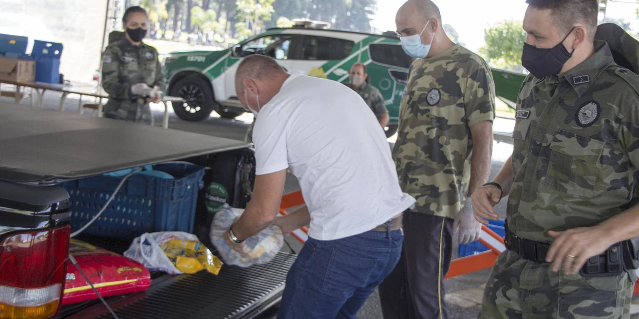 Policiais militares de todo o Estado estão engajados na atividade e também fizeram a sua parte entregando donativos nas unidades em que trabalham. Para evitar aglomerações e agilizar o processo de doação, o Batalhão Ambiental montou pontos de entrega com o sistema drive-thru.