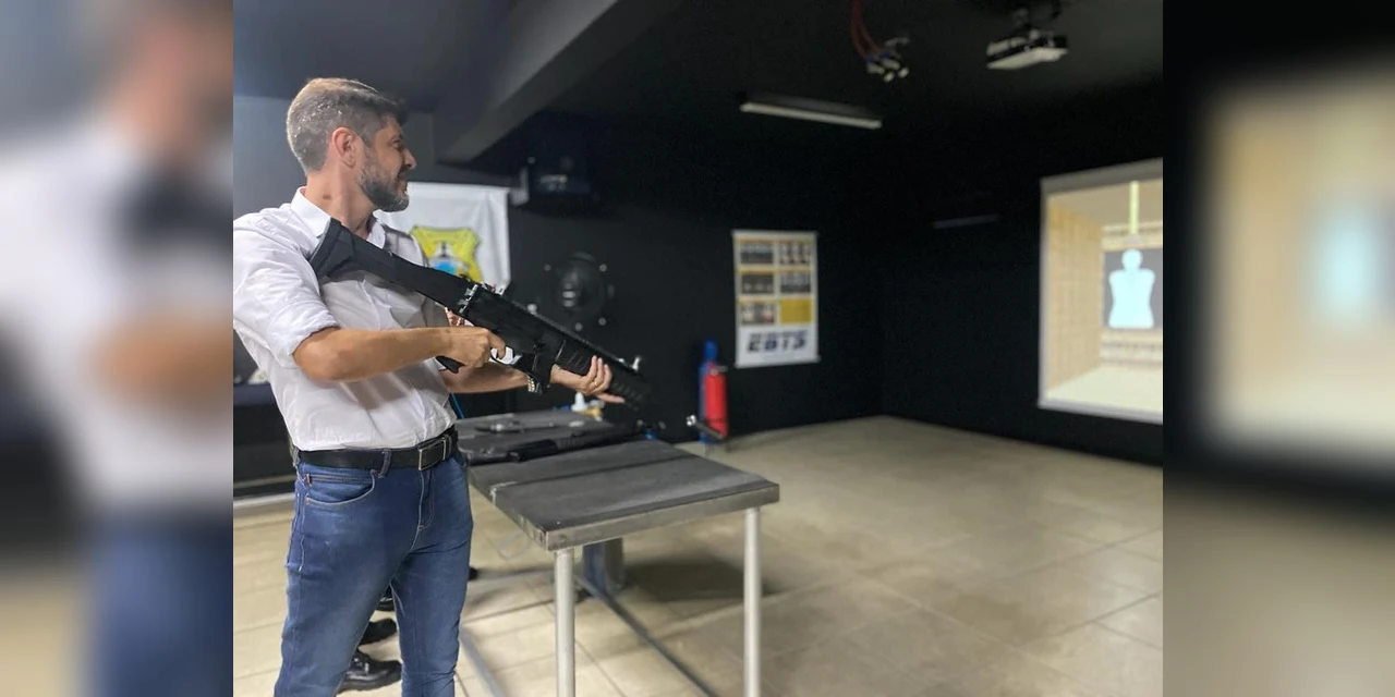 COM ASSESSORIAS - Na tarde desta quinta-feira (02), o prefeito em exercício Capitão Saulo conheceu o estande de tiro virtual da Guarda Civil Municipal (GCM). A estrutura foi inaugurada em dezembro de 2022 e é utilizada no treinamento e capacitação das equipes que atuam na segurança do Município.