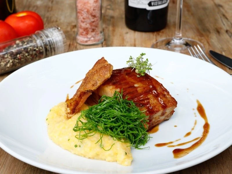 Já no C’la Vie, restaurante contemporâneo, a aposta é a “Saltimboca de mignon suíno ao molho roti, com risoto de açafrão” e a “Pancetta assada ao molho demi-glace”, servida com quirera cremosa e couve. O Chef Danilo Almeida diz que a ideia é valorizar a carne magra e saborosa, e dar um toque de sofisticação: “transformamos um clássico e mostramos que é possível fazer um prato refinado com uma proteína mais acessível”.