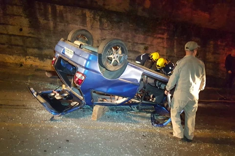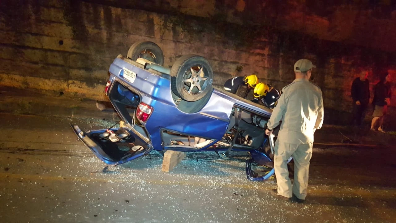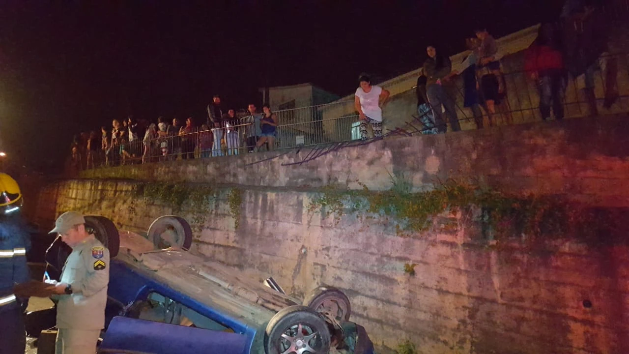 Segundo os Bombeiros, o veículo ficou com as rodas para o ar depois que o motorista perdeu a direção, bateu numa grade metálica e caiu. Por milagre, os dois ocupantes do automóvel foram resgatados pelos socorristas apresentando apenas ferimentos leves.