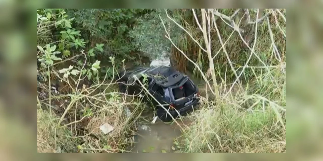 Após a queda, o veículo tombou e ficou com as rodas para cima, sendo virado por moradores da região.