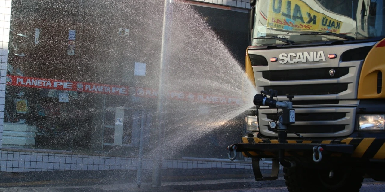 IMPRENSA/Ponta Grossa - O carro de combate ao novo coronavírus fará mais uma rodada de desinfecção das principais vias públicas de Ponta Grossa na manhã desta quinta-feira (30). A ação começará por volta das 6h e o intuito é utilizar 12 mil litros de hipoclorito de sódio para fazer a limpeza do centro da cidade. O caminhão utilizado para a sanitização foi adquirido pela Prefeitura para o Aeroporto Sant'Ana.