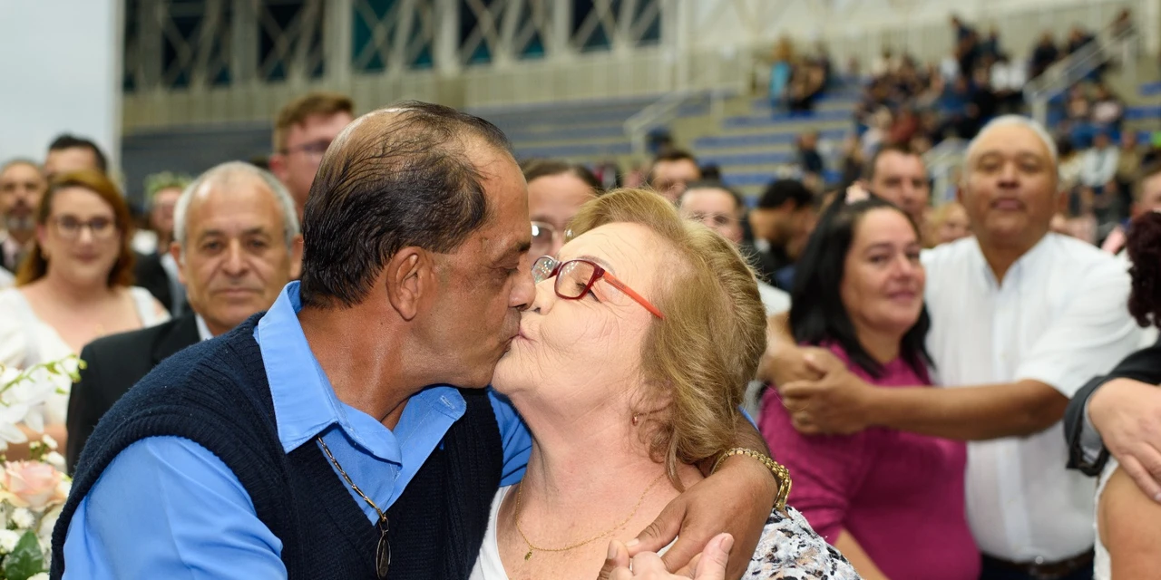 Entre os noivos, histórias de amor de décadas ganharam um novo capítulo. É o caso de Laila Cristiane Barbosa, cuidadora de idosos, e Fábio Fernando Rosa, que trabalha com retífica. Juntos há 27 anos, o casal aguardava pela oportunidade de oficializar a união no civil. “Para mim foi muito importante, porque eu estava querendo casar para ficar com tudo correto. Deu certo”, contou Laila. Fábio completou: “A gente está cumprindo mais um rito e fechando uma brecha”. Emocionado, ele se declarou: “Lailinha, você é a minha vida. Te amo.” E ouviu de volta: “Também te amo”.