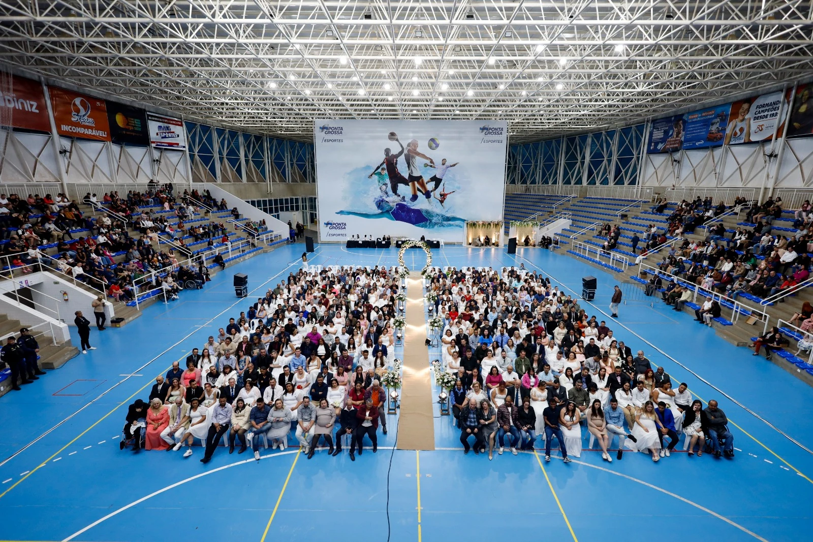 COM ASSESSORIAS - O amor tomou conta da Arena Multiuso na tarde do último sábado (12), durante a cerimônia do Casamento Coletivo Civil promovido pelo programa Justiça no Bairro, em Ponta Grossa. O evento celebrou a união de 226 casais em um momento repleto de emoção, sorrisos e esperança, reunindo familiares, amigos e autoridades em uma tarde inesquecível.