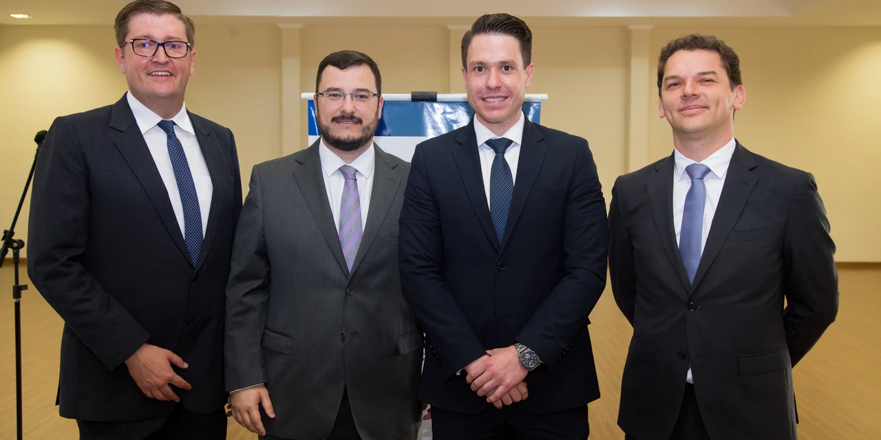 Da esquerda para a direita - os sócios da Cátedra João Paulo Vieira Dreschk, Rodrigo Di Piero Mendes, Marcus Freitas e o juiz federal Antônio César Bochenek. (Divulgação)