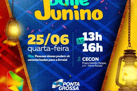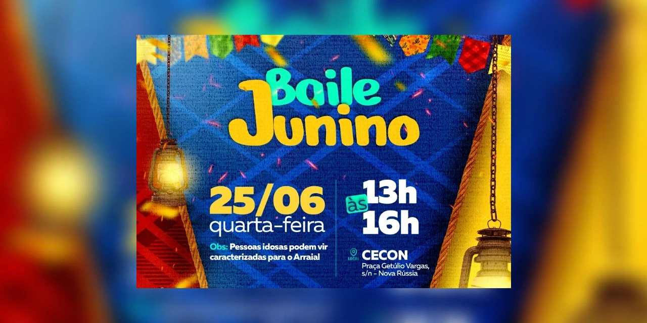 COM ASSESSORIAS - A animação está garantida no Cecon Nova Rússia nesta quarta-feira (25), com a realização do Baile Junino, que acontece das 13h às 16h, na Praça Getúlio Vargas. A atividade é voltada aos frequentadores do Centro e promete uma tarde de muita música, dança e diversão.