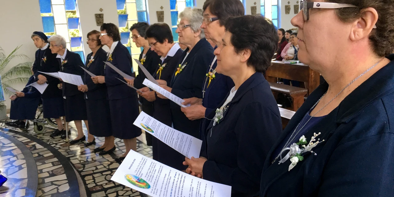 A irmã Mariamicaela Escalquette, natural do Espirito Santo, tem 87 anos e celebrava 65 de vida religiosa consagrada. “Sou sempre feliz e nunca me arrependi de ter entrado, de ter trabalhado muito em escolas, nas pastorais. A felicidade se traz dentro da gente. Sejam alegres, sejam felizes, procurem dar um sorriso sempre. Isso atrai”, orientava. A colega, irmã Maria de Lourdes Pinto, que morou com Micaela em 2007, destacou que o testemunho de vida é tudo. “O ardor missionário que ela traz no coração mexe muito com a gente, nos enche de alegria e anima as jovens na caminhada”, acrescentou.