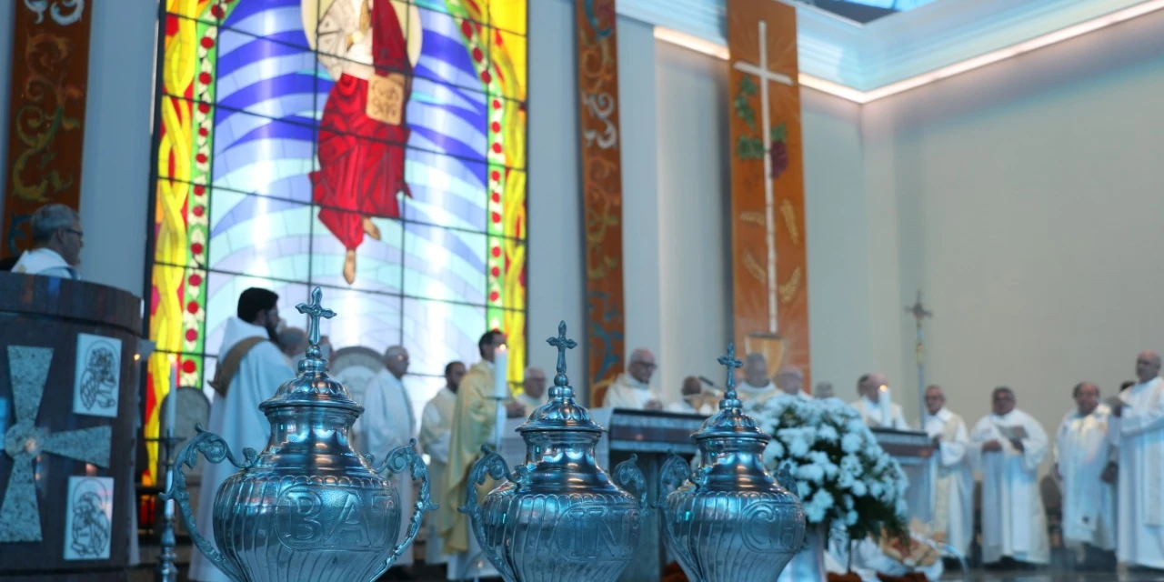 A Missa do Crisma é celebrada pelo bispo e seu clero. É durante essa missa que normalmente acontece a bênção do óleo dos enfermos e dos óleos dos catecúmenos. Na homilia, o bispo exorta os seus presbíteros a serem fiéis aos seus cargos e os convida a renovarem publicamente as promessas sacerdotais. É para exprimir a unidade do presbitério, que os padres, das várias regiões da diocese, concelebram com o bispo. Convém, portanto, que todos os presbíteros, tanto quanto possível, participem dela, e nela comunguem sob as duas espécies. A Missa do Crisma foi transferida para outro momento, com data ainda a ser definida.