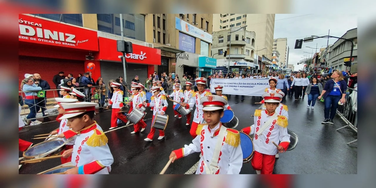 COM ASSESSORIAS - Após dois anos, Ponta Grossa pôde novamente celebrar a Independência do Brasil com o tradicional desfile cívico-militar nas ruas centrais da cidade. Logo cedo, a dúvida sobre a realização do evento ainda permanecia, devido à insistência do mau tempo. Com a trégua das chuvas, a decisão final pelo desfile foi tomada em conjunto entre a prefeita Elizabeth Schmidt e o comando da 5ª Brigada de Cavalaria Blindada.