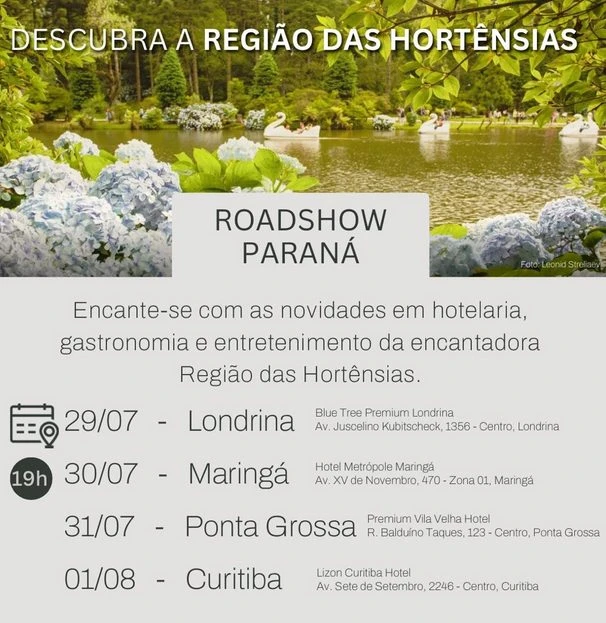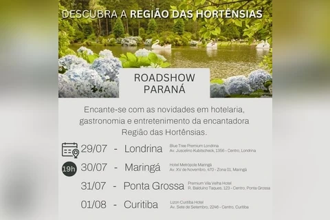 COM ASSESSORIAS - Depois do sucesso do roadshow em Santa Catarina, o CONTUR Hortênsias promove agora uma viagem de negócios para o Paraná. O objetivo da ação é apresentar cidades gaúchas como alternativas turísticas, com foco em restabelecer a atividade na região, fortemente afetada pelas enchentes de maio e que ainda sofre as consequências do fechamento temporário do Aeroporto de Porto Alegre. Será de 29/07 a 1/08, passando pelas cidades de Londrina, Maringá, Ponta Grossa e Curitiba. O público-alvo do roadshow são agências operadoras, influenciadores e imprensa do Paraná, que participam de jantares com apresentações institucionais de cada cidade, além de rodadas de negociações, onde poderão conversar diretamente com proprietários de hotéis, pousadas, restaurantes, atrativos e parques e agências e operadoras gaúchas.